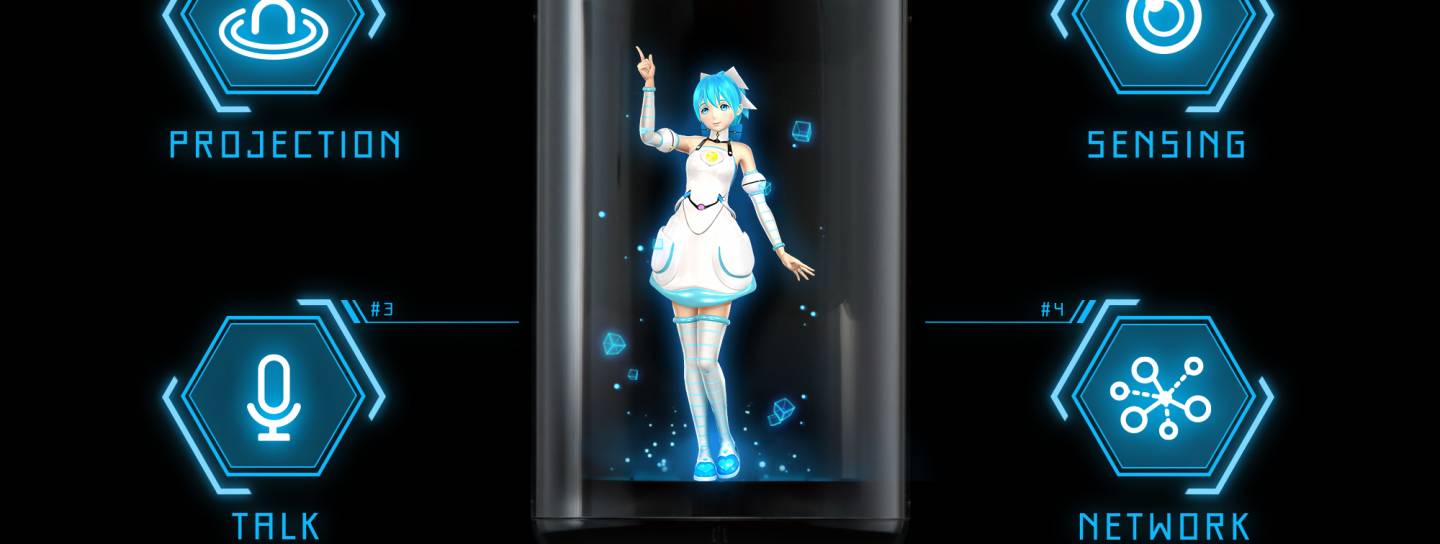 Die 22cm x 36cm x 52cm große Gatebox ist mit Lautsprechern, diversen Sensoren und einem Projektor ausgestattet. Als Anime-Charakter personifiziert, “lebt” und interagiert der virtuelle Roboter in der kleinen Hologramm-Kammer. Über die Sensoren nimmt die Gatebox Bewegungen, Helligkeit, Temperatur und Stimmen wahr und reagiert entsprechend auf die Reize.