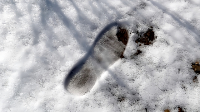 Im Frühling verwandelt sich Schnee, der nicht vollständig geschmolzen ist, über Nacht in Eis und bekommt eine harte (katai) Schicht obenauf. Sei nur vorsichtig, wie viel Gewicht du darauf setzt!