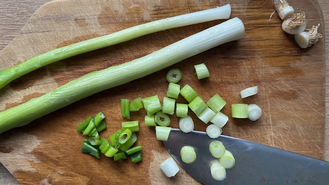 Mit Frühlingszwiebel und Katsuobushi bestreuen und warm servieren.