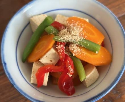 Leicht, bunt und voller Geschmack: Dieses japanische Rezept kombiniert knackiges Gemüse und zarten Tofu in einer aromatischen Marinade aus Reisessig, Sojasauce und Sesam. Perfekt als kalte Beilage oder erfrischende Vorspeise.