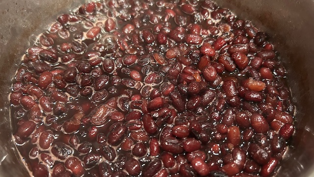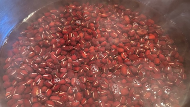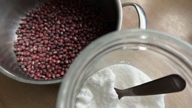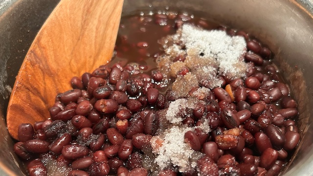 Azuki-Bohnen: Bohnen waschen, mit Wasser 3 Minuten aufkochen und abgießen. Anschließend mit frischem Wasser erneut aufkochen und bei niedriger Hitze 45–60 Minuten weich köcheln. Gelegentlich umrühren und Wasser nachgießen.