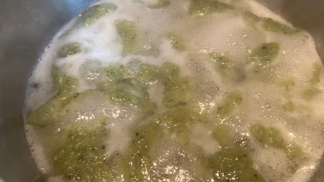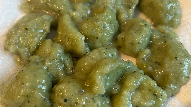 Einen Topf mit reichlich Wasser erhitzen. Den Teig löffelweise hineingeben und 8–10 Minuten gar ziehen lassen. Herausnehmen und auf Küchenpapier abtropfen lassen.