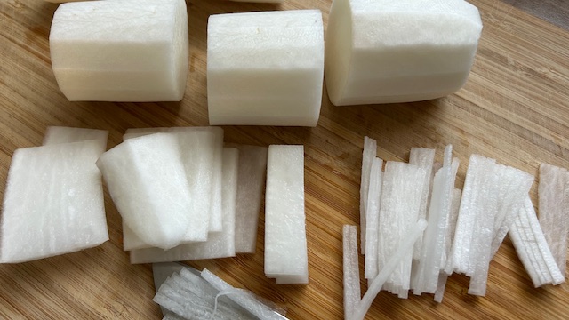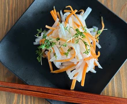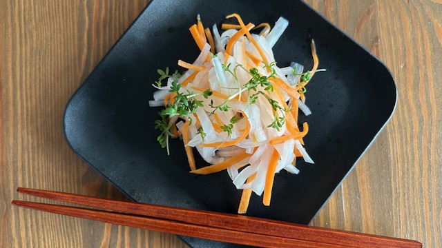 Namasu ist eine klassische japanische Speise zum Neujahrsfest (Oshōgatsu). Der fein geschnittene weiße Rettich und die Karotte werden süß-sauer mariniert und stehen symbolisch für Reinheit und einen frischen Start ins neue Jahr.