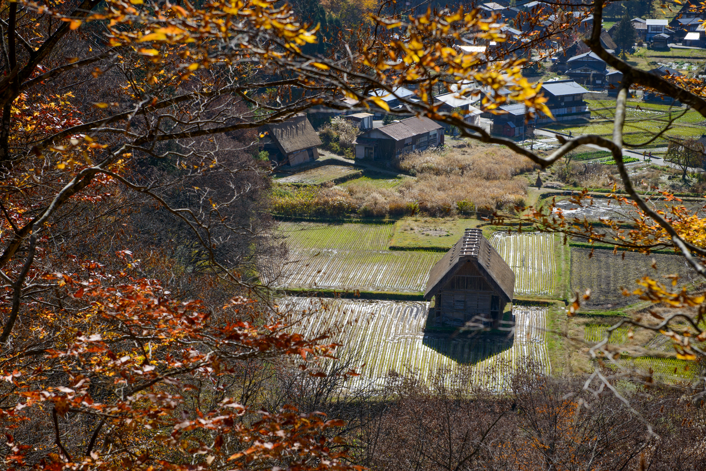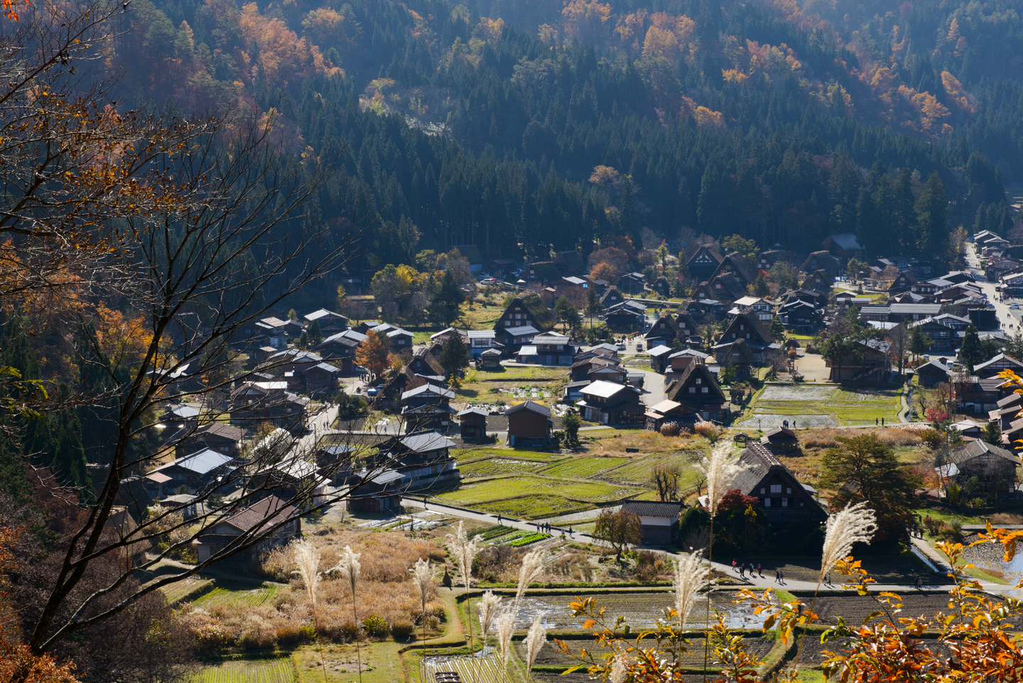 Der berühmteste Aussichtspunkt liegt oberhalb des Dorfes Ogimachi. Von hier zeigt sich Shirakawa-gō wie aus einem Bilderbuch: die historischen Häuser, umgeben von Feldern und Herbstwald, eingebettet zwischen Bergflanken. Besonders im spätherbstlichen Licht entfaltet dieser Blick seine volle Wirkung. Ein Motiv, das zu den meistfotografierten in ganz Gifu gehört.