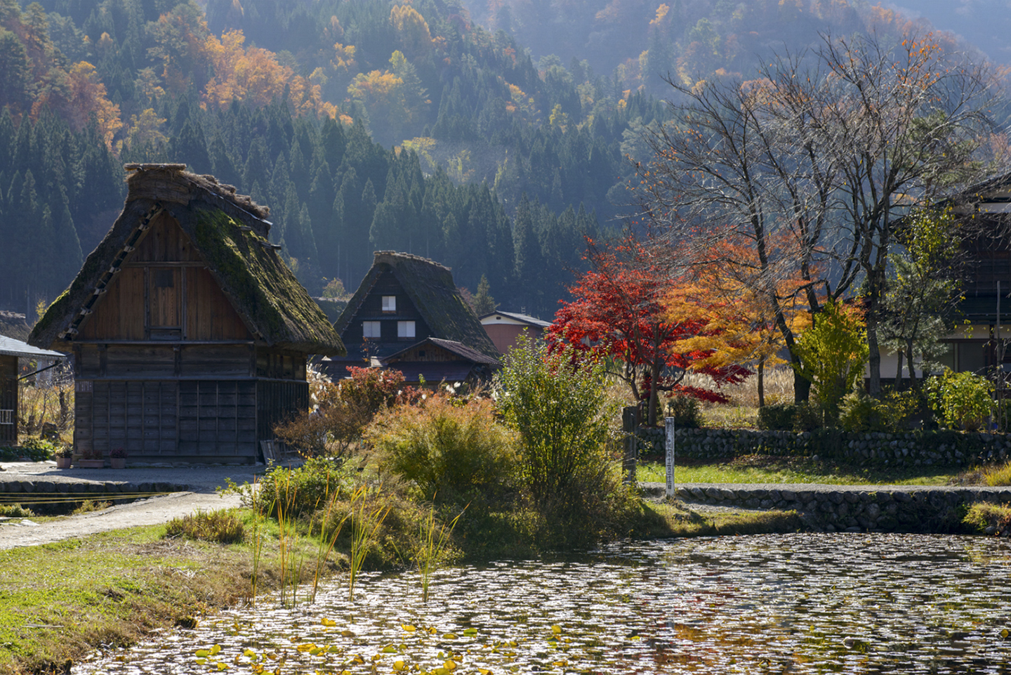 Shirakawa-gō (Gifu-Präfektur) ist eines der bekanntesten historischen Dörfer Japans. Seit 1995 gehört die Region zum UNESCO-Weltkulturerbe und zieht Besucher mit ihren traditionellen Holzhäusern an, die Gasshō-zukuri genannt werden. Die steil geneigten Reetdächer sind charakteristisch für diese Architektur und zugleich ein Hinweis auf das Leben in einer Region, in der meterhoher Schnee keine Seltenheit ist. Im Spätherbst zeigt sich das Dorf besonders atmosphärisch: Im Tal erreicht die Herbstfärbung ihren Höhepunkt. Zwischen warmem Gold, feurigem Rot und sattem Orange entsteht ein Landschaftsbild, das viele Japanerinnen und Japaner als „Urlandschaft“ empfinden – ein Ort, der Erinnerungen und leise Nostalgie weckt.