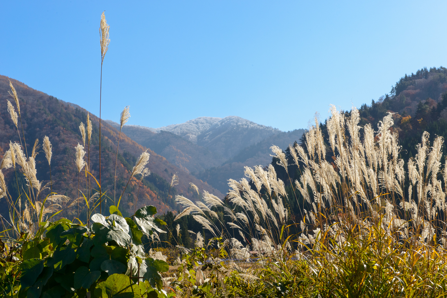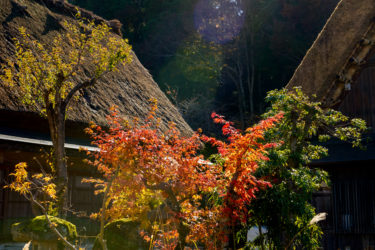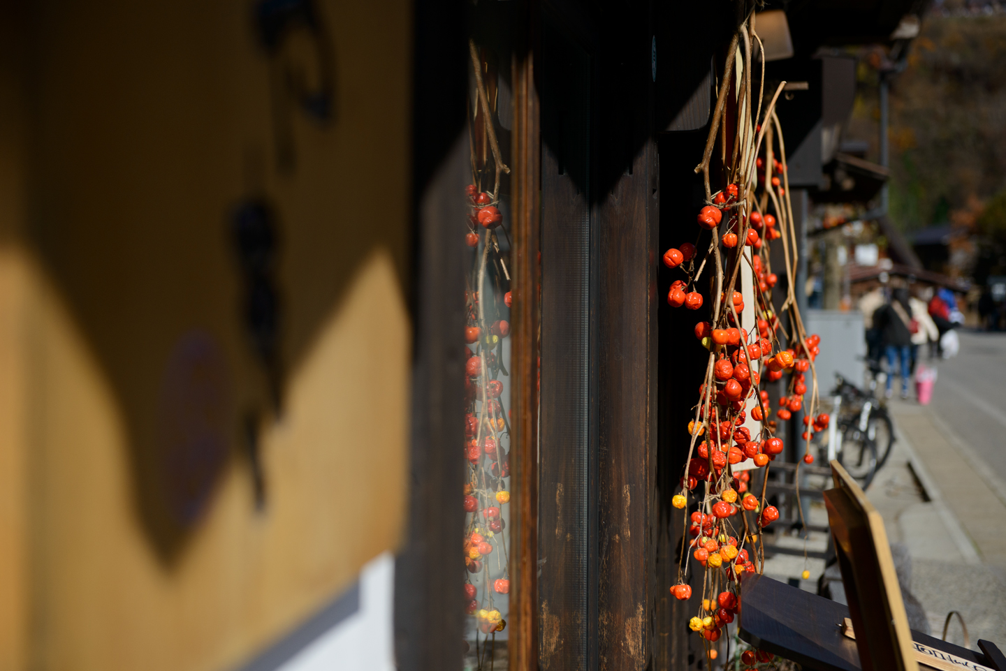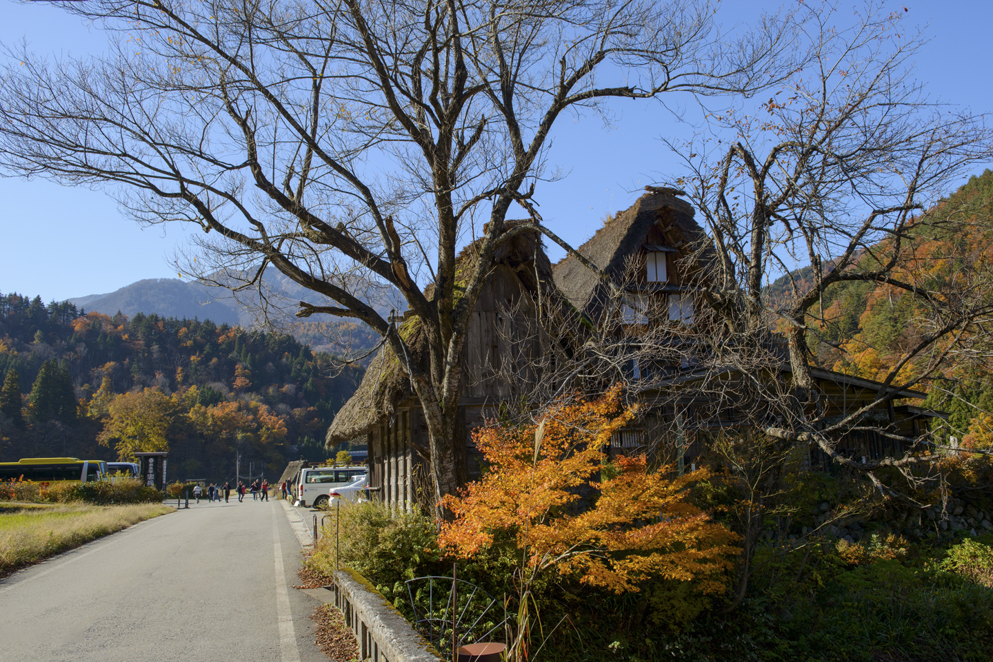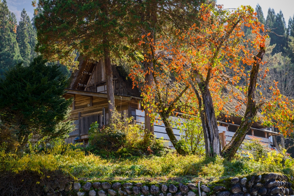 Der Spätherbst ist in Shirakawa-gō eine Zeit des Übergangs. Die Reisernten sind eingebracht, und die Felder liegen still. In den Gärten hängen die letzten Früchte: tiefrote Kaki, glänzende Kastanien oder getrocknete Schoten, die unter den Dachvorsprüngen baumeln. Sie erzählen von einem ländlichen Alltag, der sich über Generationen kaum verändert hat. Die klaren, kühlen Tage bringen zudem ein besonderes Licht mit sich. Es lässt die Holzbalken und Dächer der Gasshō-zukuri warm aufleuchten und verstärkt die intensiven Farben der umliegenden Wälder. Wer über die schmalen Wege durch das Dorf geht, spürt: Der Winter steht unmittelbar bevor.