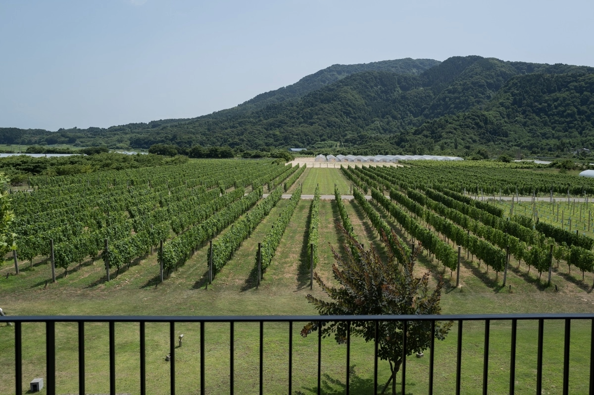 Um es offen zu sagen: Japanische Weinregionen sind im Allgemeinen nicht besonders schön, zumindest nicht im romantischen Sinne von Toskana oder Napa. Man denke etwa an Katsunuma in Yamanashi, Japans ältestes Weinbaugebiet, wo sich Weinberge zwischen Häusern und Fabriken entlang einer Schnellstraße verteilen und Stromleitungen den Himmel durchziehen. Die Weine können ausgezeichnet sein, doch der Landschaft fehlt dieses klassische Weinland-Gefühl. Die Niigata Wine Coast hingegen wurde bewusst so gestaltet, dass sie auch optisch diesem Anspruch gerecht wird.